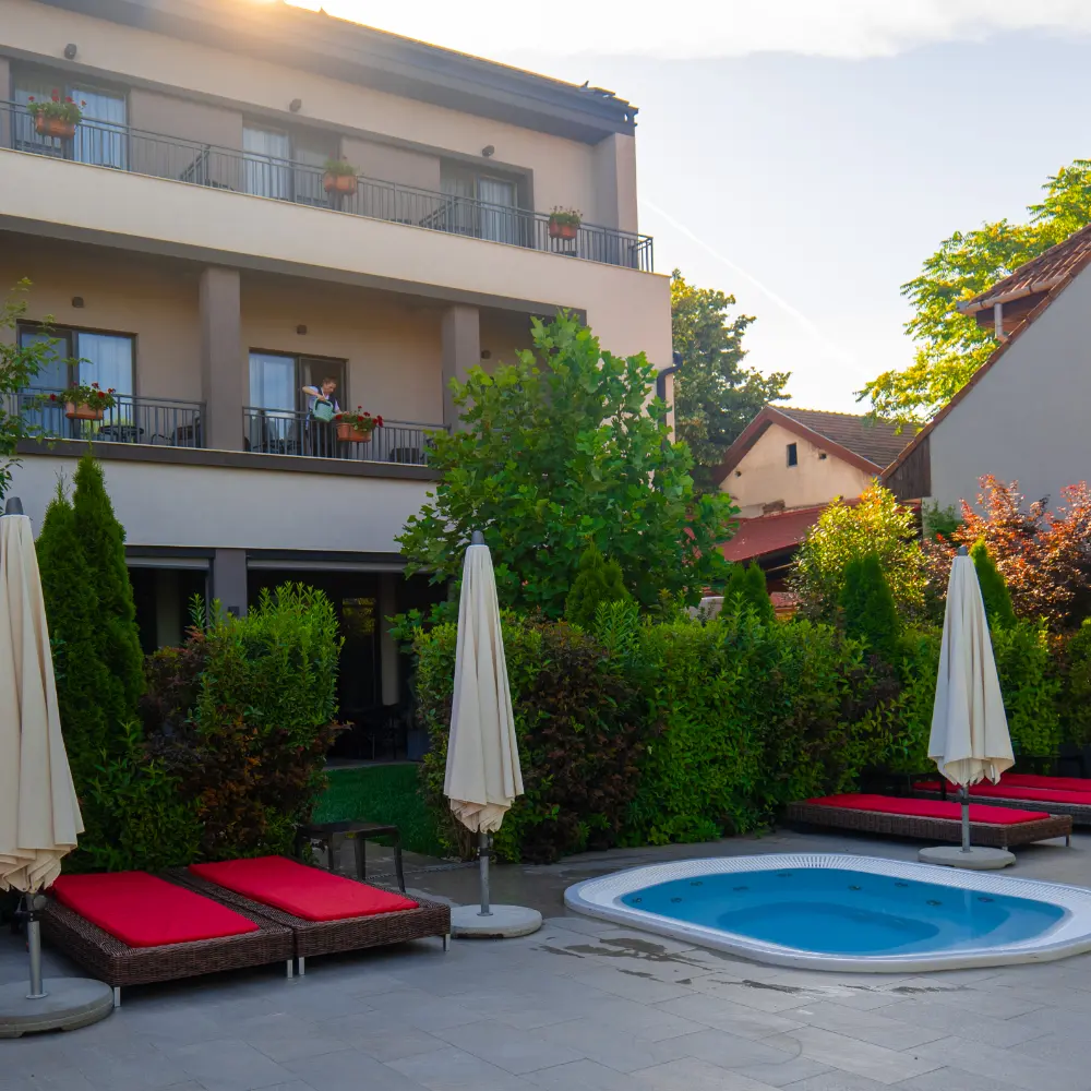 La Spa-ul Nora, vă așteaptă o colecție selectă de servicii pentru relaxare completă. Bucurați-vă de momente de răcoare în piscina noastră exterioară în zilele călduroase, sau de căldura reconfortantă a jacuzzi-ului acoperit, disponibil tot anul. Saunele noastre, fie că preferați uscată sau cu aburi, promit o detoxifiere profundă, în timp ce dusul cromatic aduce o nouă dimensiune relaxării dumneavoastră. Pentru iubitorii de aer liber, spațiul nostru pentru grătar și masa de ping-pong adaugă un plus de distracție, iar lounge-ul exterior cu bar este locul perfect pentru a vă destinde cu o băutură răcoritoare. Toate acestea sunt gândite să vă ofere o evadare ideală din rutina zilnică, într-un cadru care îmbină natura cu confortul.servicii personalizate, toate gândite să vă ofere experiența ideală de cazare.